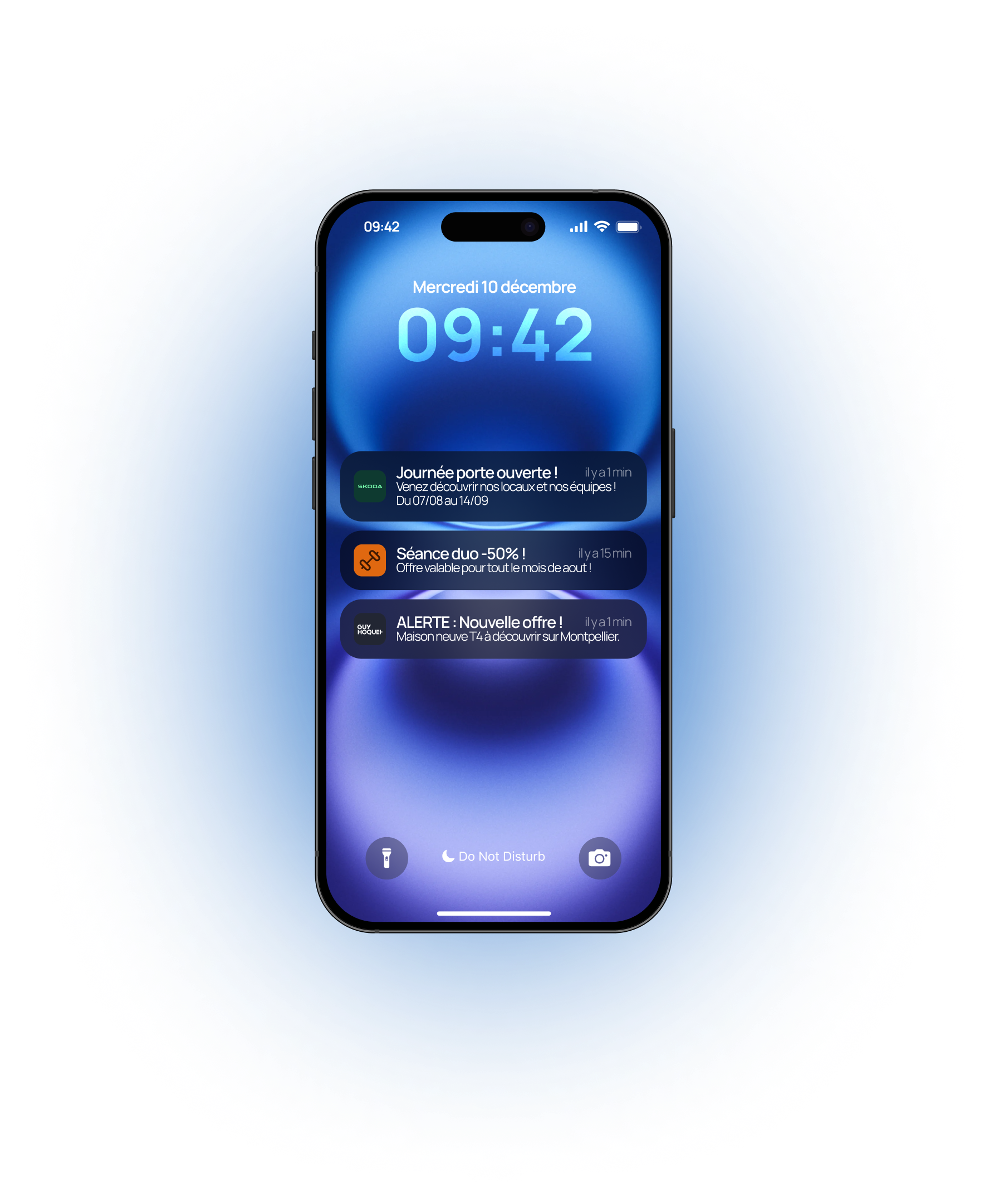 Informez, alertez, fidélisez… Restez en contact avec votre réseau à tout moment. Envoyez des notifications à tous ceux qui ont téléchargé votre appli. En temps réel, sans limite.